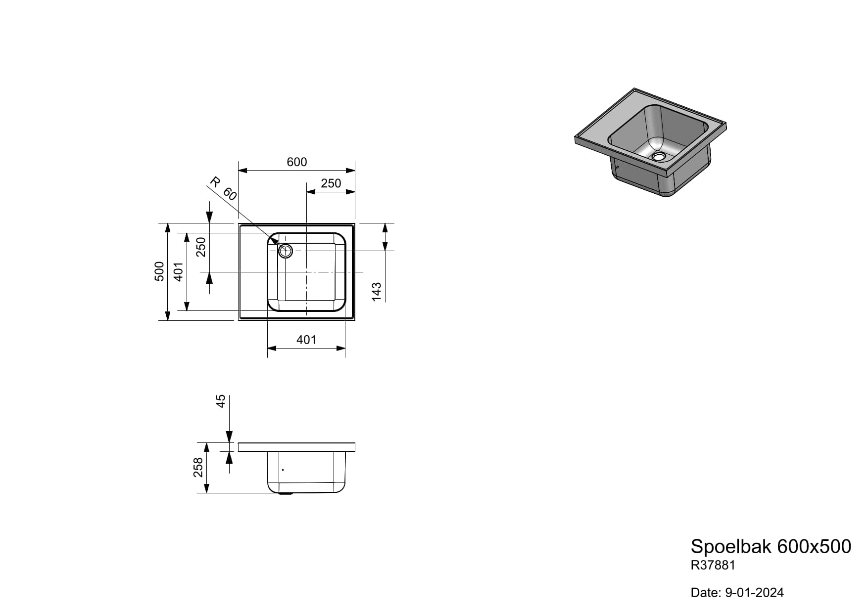 Spoelbak 600x500