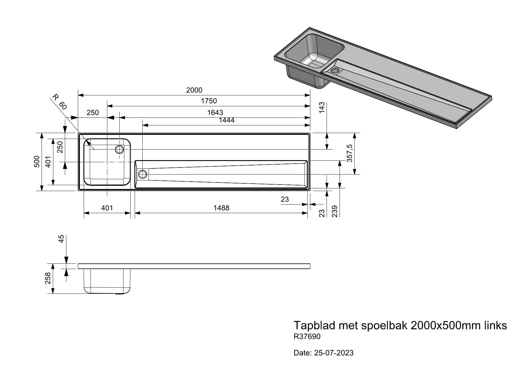 Total dimensions (mm) 2000x500x258