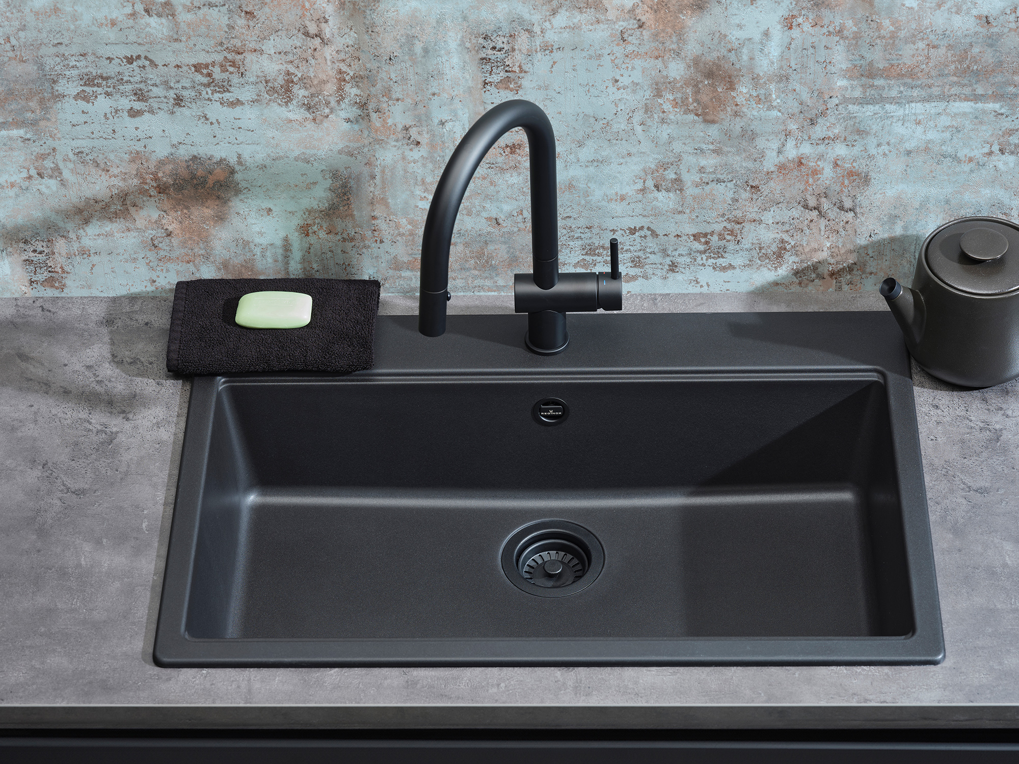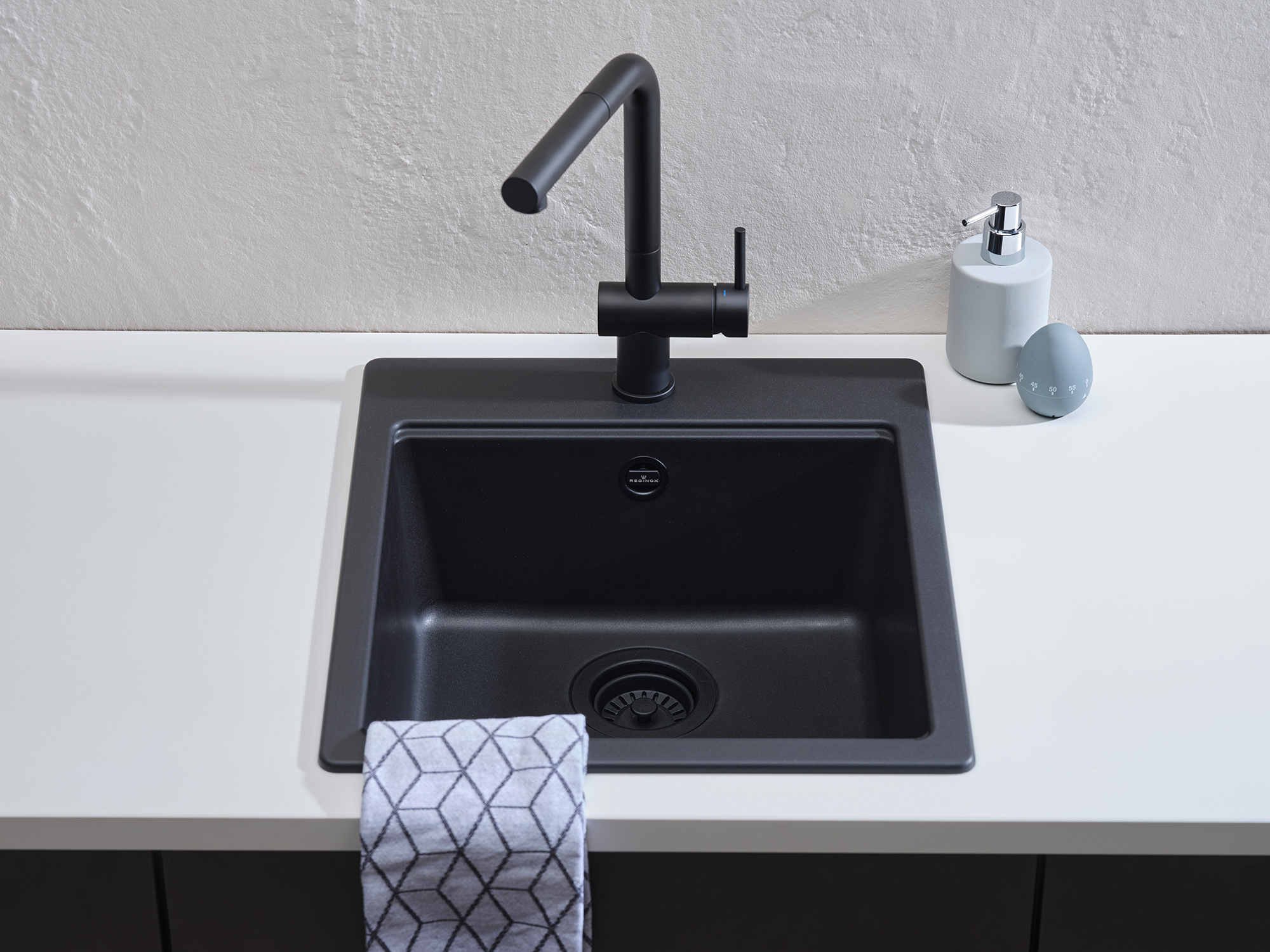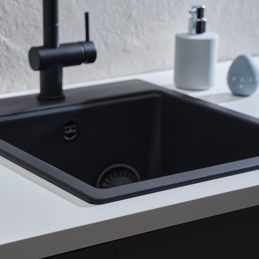 The Messina is also a new Elite-Granite sink in the color Nero Black. The Messina model is available in three different sizes (Messia 40, Messina 50 and Messina 70). These can be installed (semi-) integrated and undermount. Check out the models via the button.