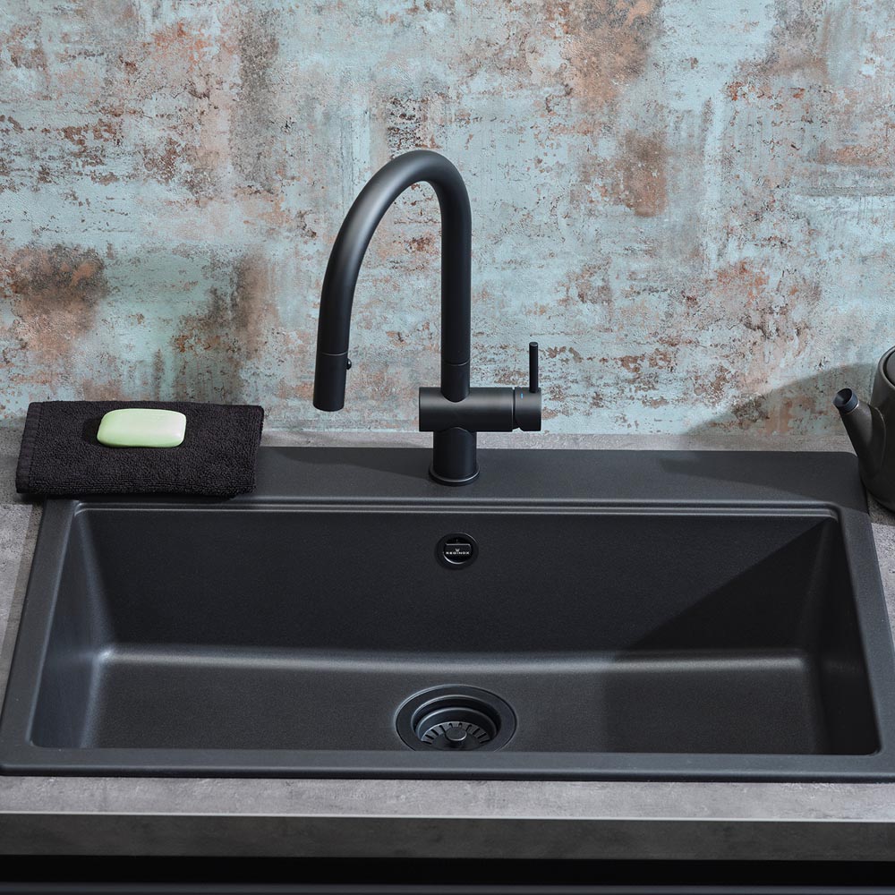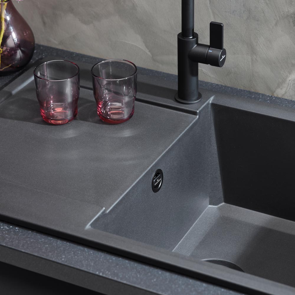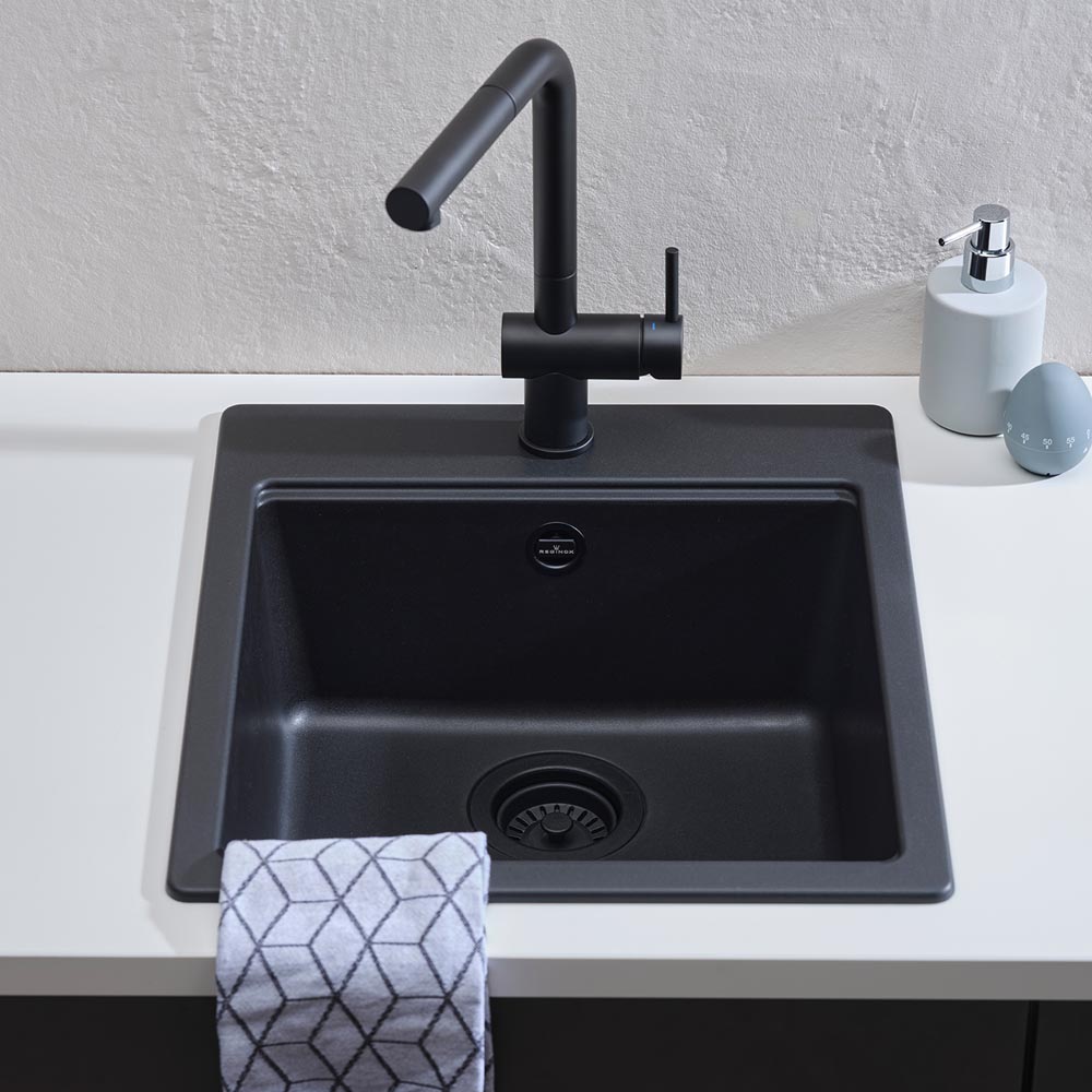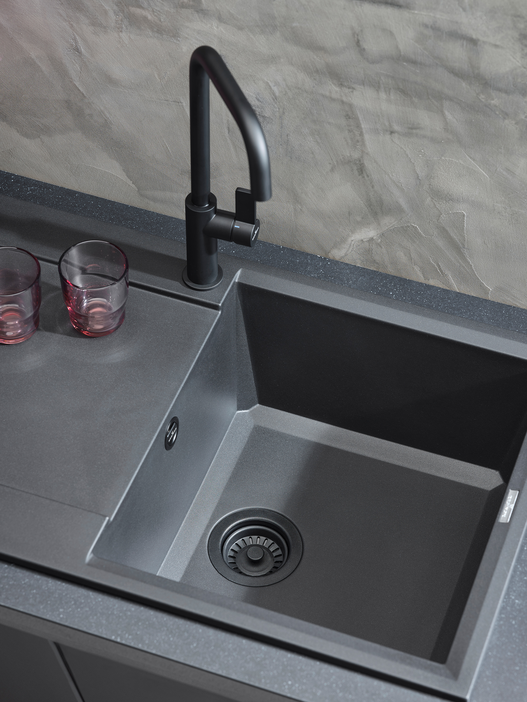 The Messina is also a new Elite-Granite sink in the color Nero Black. The Messina model is available in three different sizes (Messia 40, Messina 50 and Messina 70). These can be installed (semi-) integrated and undermount. Check out the models via the button.