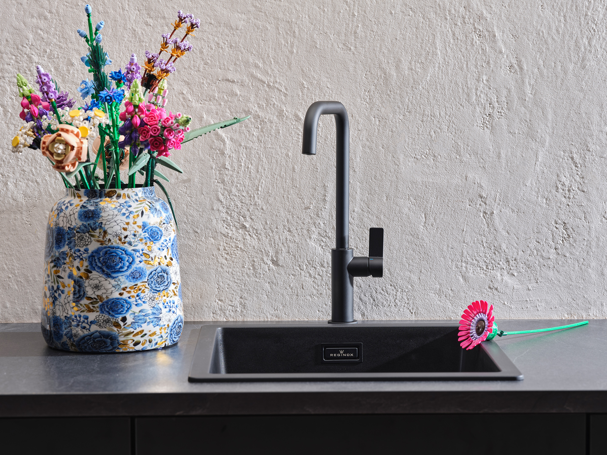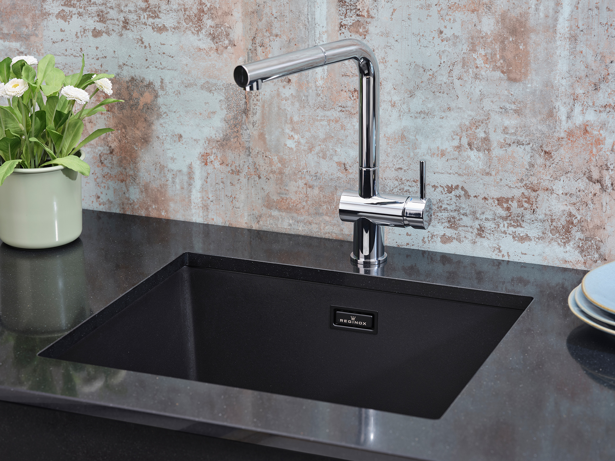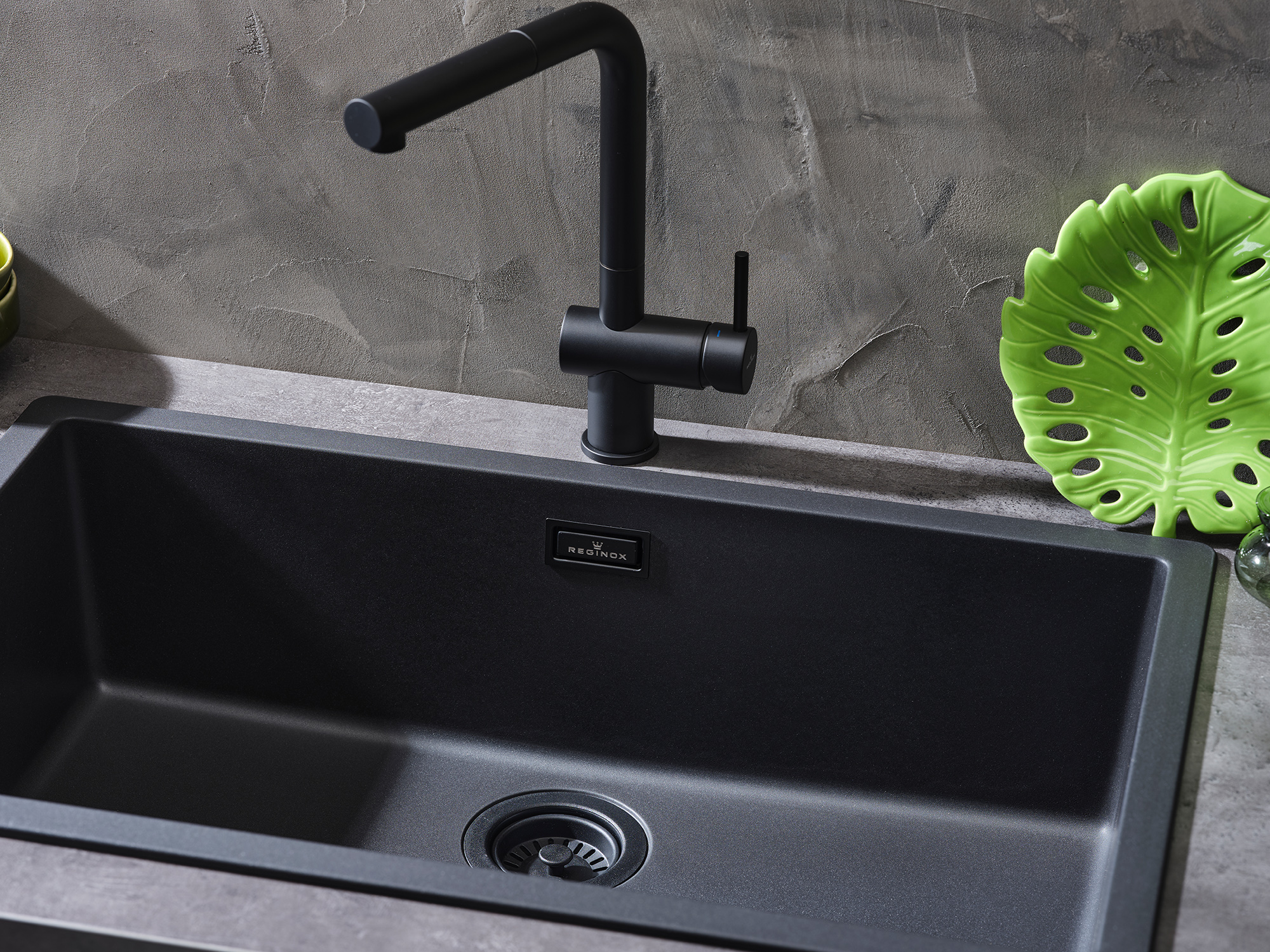 Reginox introduces a new granite line, the Elite! The Elite sinks are made from a composition of a natural granite and acrylic resin. A specialised process, using fully coloured granite particles. This makes the sinks timeless, durable and versatile, with high resistance to impact and temperature changes. The granite sinks are easy to clean and come in four different variants in several sizes; the Florence, the Bari, the Verona and the Messina.