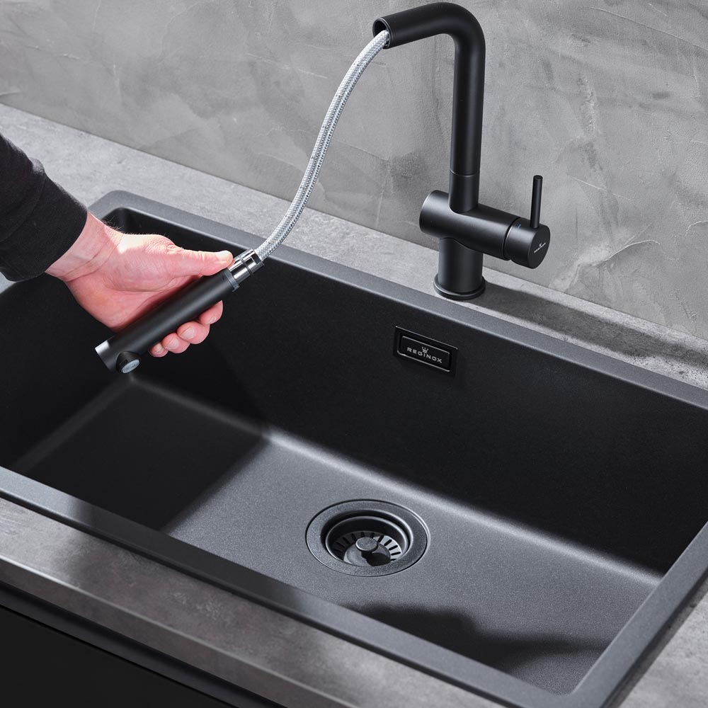 The Verona is available in the color Nero Black; a matte black color, which is deep, pure and intense. The Verona model can be ordered in three versions, Verona 40, Verona 50, Verona 70, and these sinks can be installed as (semi-)integrated and undermount.