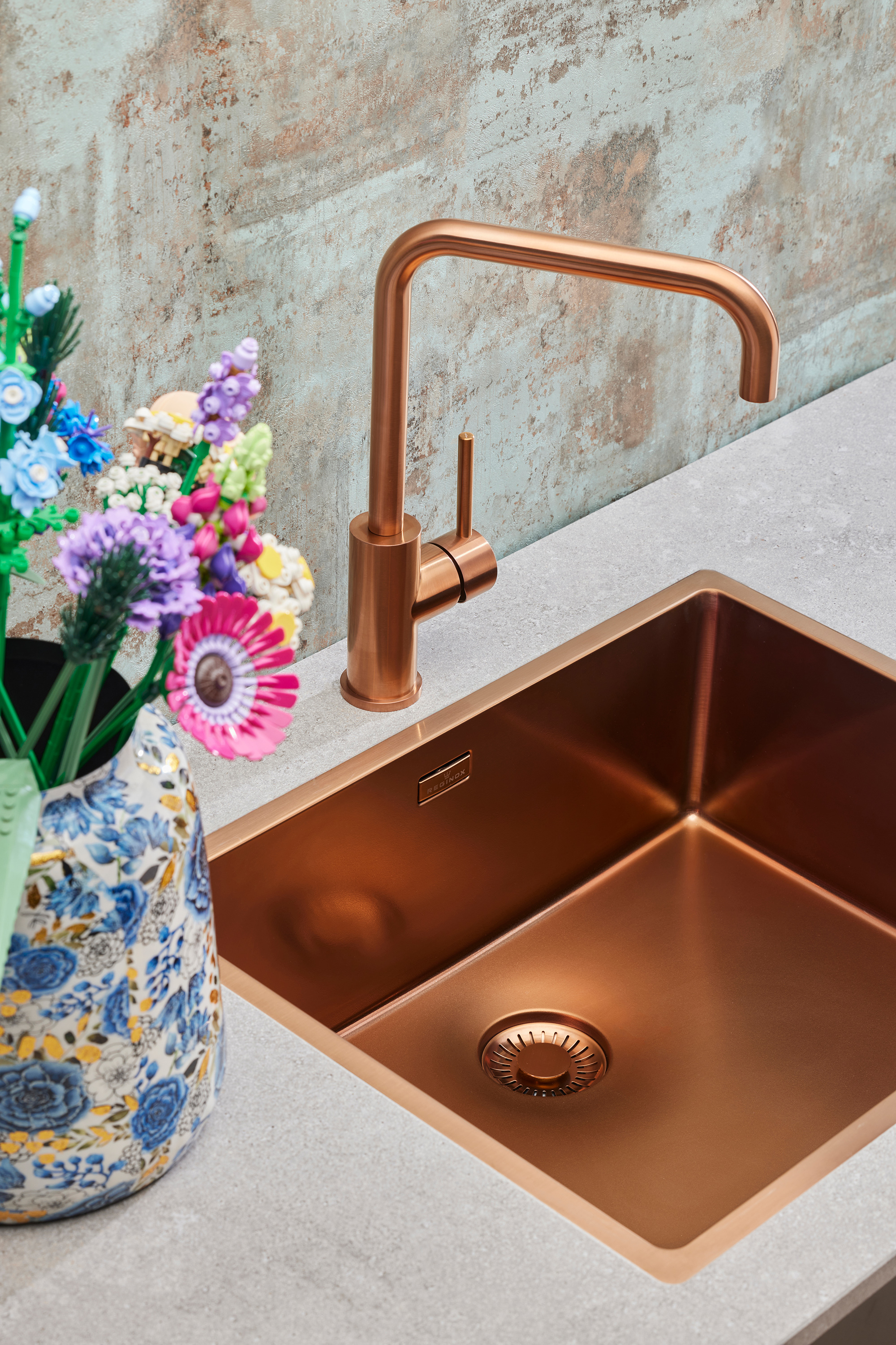 The familiar New York series has been expanded with three different colours. Made possible by PVD technology. Choose our New York 40x40 or 50x40 in the finish Gun Metal Silver, Copper Rose or Gold Flax and complete your kitchen. These New York sinks retain their usual quality and comfort and feature the same sleek design thanks to our deepdrawn technology and high-grade stainless steel. On top of that, these sinks do not have any welded or folded seams and the overflow and comfortplug have a matching colour. Thanks to the beautiful colours and the aesthetically pleasing design, these sinks offer the best of both worlds!