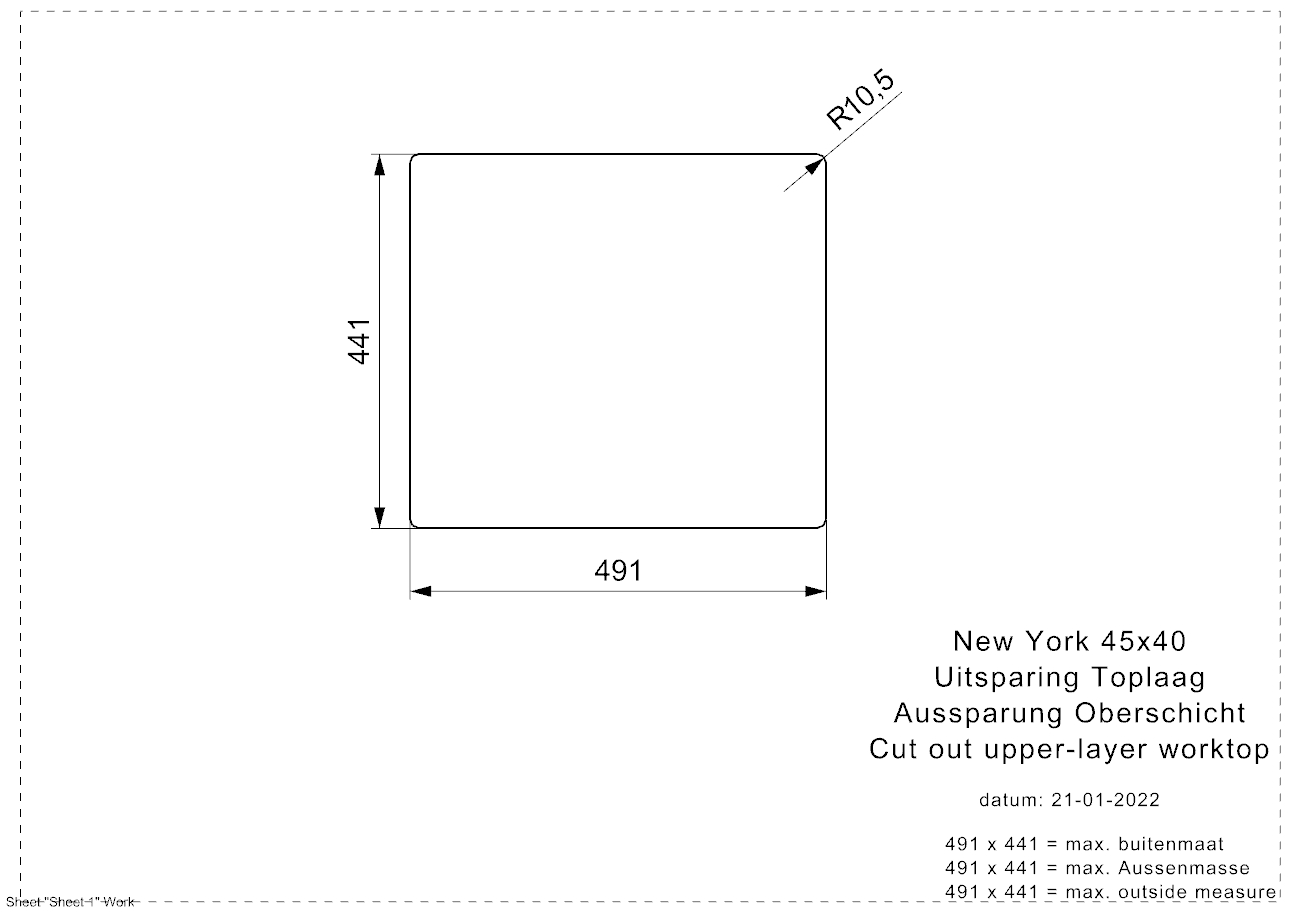 | Sink dimensions (mm) |