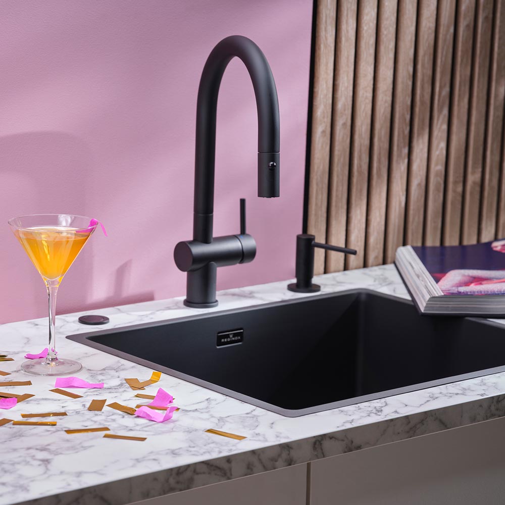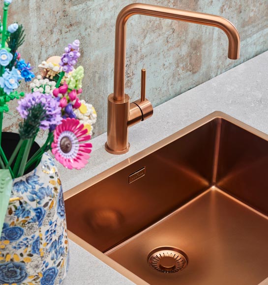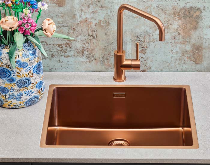 Choose from Gun Metal II, Copper II or Gold II and give any kitchen a unique, luxurious look. These coloured sinks are available in multiple sizes, including a 18x40, 34x40, 40x40, 50x40 and 34x40 + 18x40 sink.
