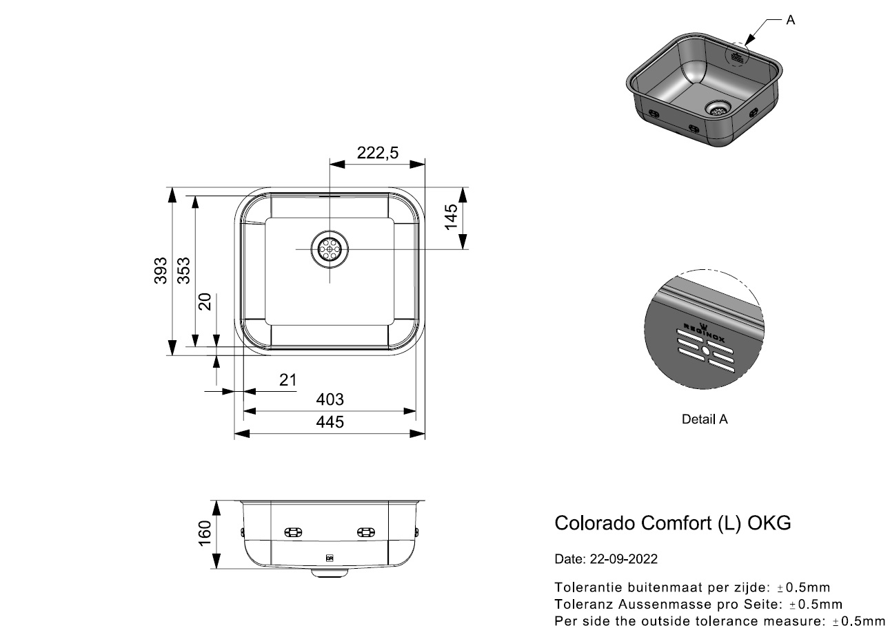 | Sink dimensions (mm) | 403x353x160 |