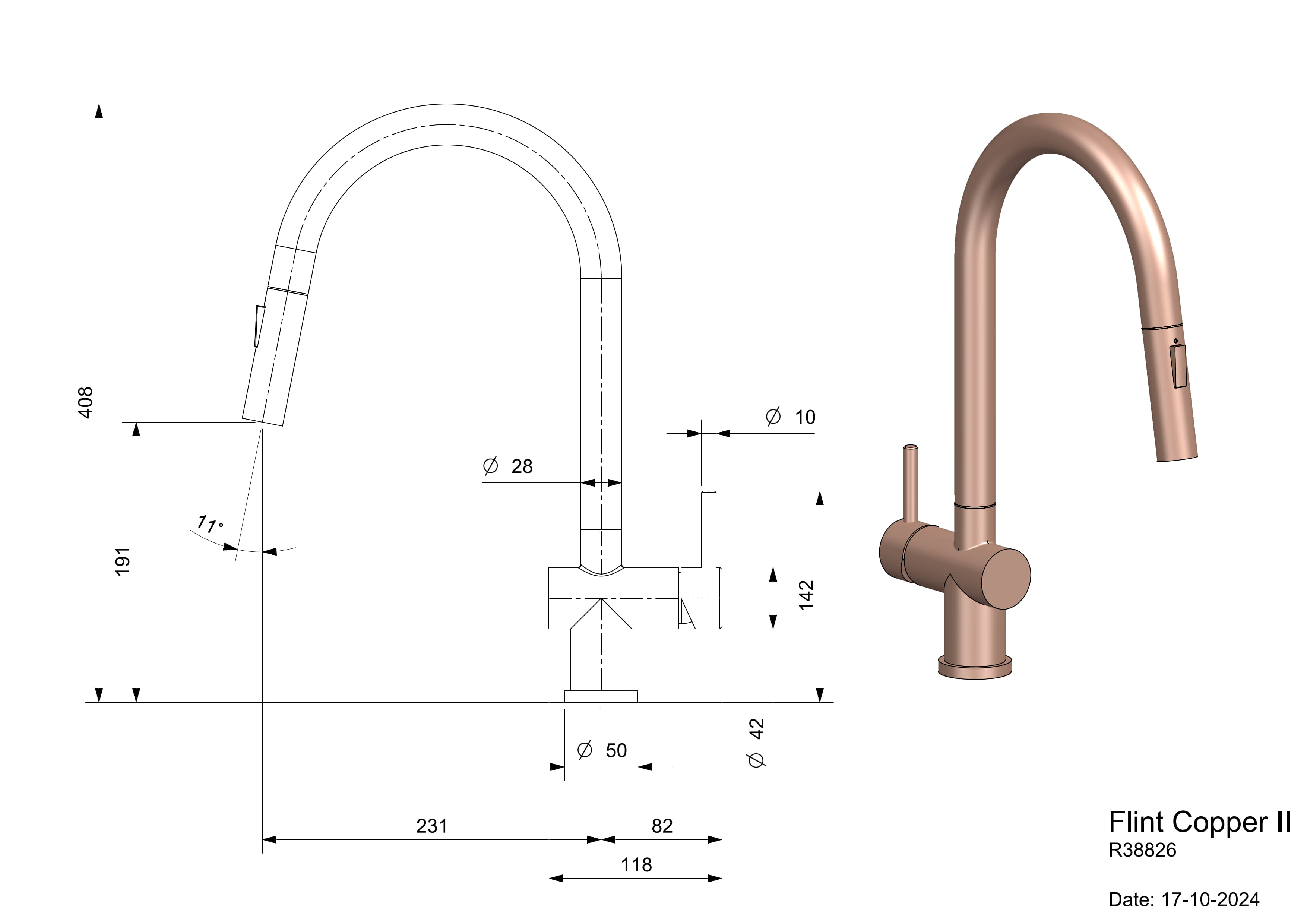 The Flint Copper II is manufactured using PVD technology. Featuring a round neck, pull-out spout and single-lever, the tap perfectly pairs with Reginox's New York PVD range.
